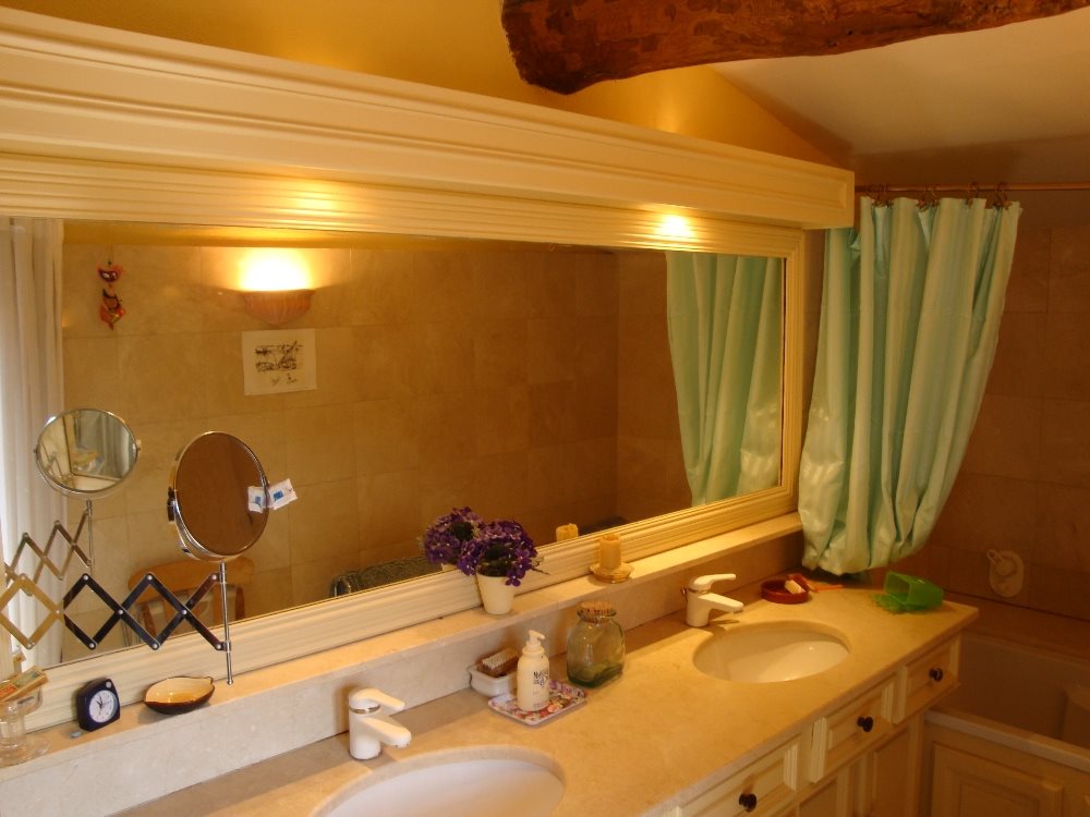 A l'étage, 1 salle d'eau avec WC et 1 salle de bains avec deux lavabos, des toilettes séparées.